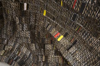 El Anatsui, Black Block, 2010, Aluminum liquor bottle caps and copper wire, Photo courtesy, Jack Shainman Gallery
