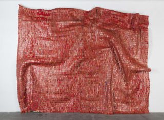Red Block, 2010, Aluminium (liquor bottle caps) and copper wire, Photo courtesy, Jack Shainman Gallery
