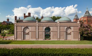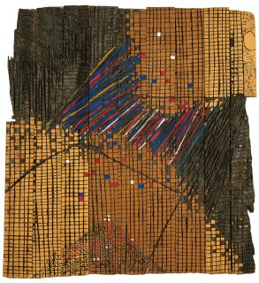 Erosion, 1992, Wood, paint, woodchips, sawdust, 117 in, Photo by El Anatsui