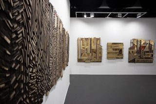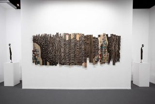 This March, Art Dubai showcases works from 120 galleries from around the world. El Anastui presents a wood panel work for the first time in 2024, alongside works by Yaw Owusu, Aida Muluneh and Maggie Otieno. El Anatsui’s The Bend In The River, 2022 hangs on a wall at Booth B14 represented by Efie Gallery.