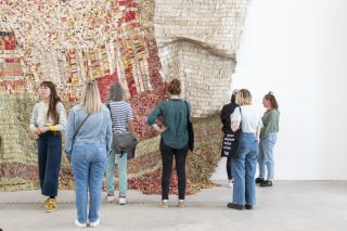 Chaleur Humaine is a large-scale exhibition presenting more than 250 works by close to 130 artists, primarily from France, Belgium, the Netherlands and the United Kingdom. The 2023 version is presented in eight chapters at the LAAC, the FRAC Grand Large, the former AP2 shipyard workshop and other public spaces throughout the city of Dunkerque. It is curated by Anna Colin and Camille Richert and features, among many other works, El Anatsui’s 2004 masterpiece, Sasa.