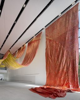 El Anatsui: After the Red Moon is part of a global tour organised by Tate Gallery. It is set to be the largest installation exhibition staged at the Museum of Art Pudong in Shanghai, China, transforming entire sections of the building. Along with modifications at the museum, the treasures conceived in 2023 for El Anatsui: Behind the Red Moon and the stars of this show have been specially modified for the waterfront architecture of the Museum of Art Pudong. According to MAP, “After the Red Moon explores elemental forces interwoven with human histories of power, dispersion, and survival”.