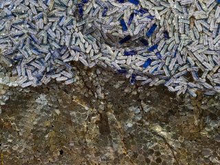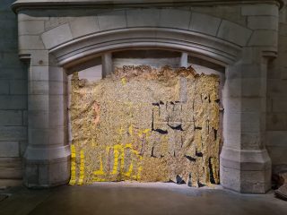 As with practically all other public events at the time, the exhibition suffered a delay due to the COVID-19 pandemic. Now, the doors to the former medieval royal palace, which became a prison during the Revolution, have opened to the public. The walls and fireplaces of the halls of the Salle des Gens d’Armes are filled with new works that reflect the theme of the exhibition. These include 6 bottle cap tapestries, 50 works in resin, each simulating a different type of rock done in collaboration with Factum Arte, and two video installations projected onto platforms located next to the central pillars of the Salle des Gens d’Armes done in collaboration with Factum Arte and October Gallery.