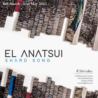 Curated by Mae-Ling Lokko, Shard Song, a solo exhibition by El Anatsui, shows from the 8th March to the 31st May, 2022 at the new Efie Gallery in Dubai.