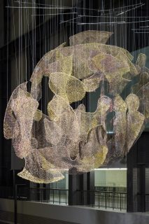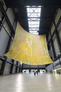2023’s edition of the Hyundai Commission at the acclaimed Turbine Hall of Tate Modern is populated by the unique and dazzling metal hanging sculptures of El Anatsui. Dubbed ‘Behind the Red Moon’, the exhibition leads you on a journey through thousands of repurposed liquor bottle caps reshaped into the floating and cascading forms of an artwork that is staged in three acts that each reflect an aspect of the vast expanse of human history and the elemental power of nature. Anatsui’s site-specific structures tell wonders of his interest in the movement and migration of goods and people during the transatlantic slave trade.