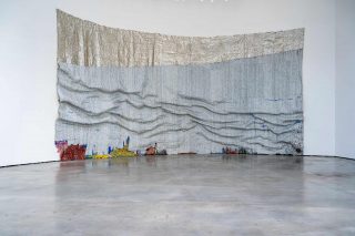 Sections/Intersections: 25 Years of Guggenheim Museum Bilbao Collection is an ambitious presentation of works from the museum’s collection. With a list of stalwart curators behind it, the exhibition’s theme is constructed as a tryptich with each floor of the museum offering a section of the collection: Material Life in gallery 105, Unfolding Narratives on the second floor, and Marking History on the third floor. El Anatsui’s Rising Sea, 2019 is the latest additions to the museum’s collection and will feature in its own space on the third floor as part of the Marking History section of the exhibition which will show from September 20, 2022 to December 31, 2023.